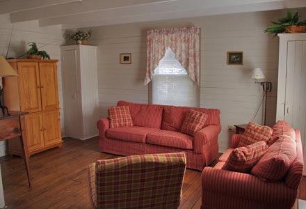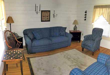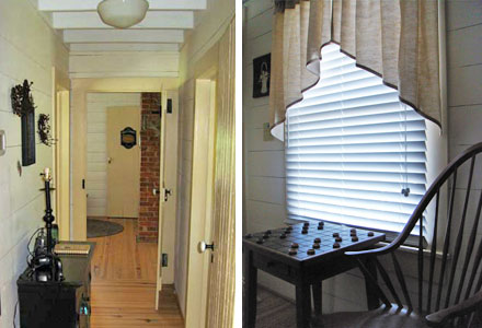The house is single story house with a spacious living room, equipped with a TV and DVD player. The country style kitchen seats more than eight. The master bedroom has a queen sized bed. The second bedroom has a set of bunk beds with a pull-out trundle bed, as well as one single bed. There is also a carpenter's bench.