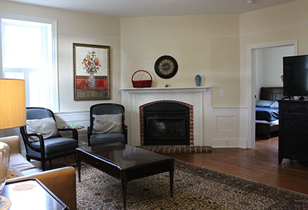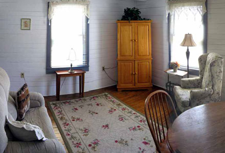 Other amenities include a fully stocked kitchen and spacious dining room. A covered and screened-in side porch and quaint back porch offer splendid views. A sidewalk leads to the back of the house, and a wheelchair lift provides accessibility.