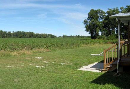 The cabin is on the perimeter of park land that is continually farmed and has a scenic view.