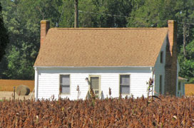 The second oldest tenant houses stand along Quarter Lane. Built in the 1910s, both feature one 1/2-story, two-room-plan main blocks measuring l6 x 31 1/2 feet. Built to house a single family, these dwellings each have a single corner stair to the loft. They stand in contrast to the similar-sized slave dwellings at Chippokes, which contain double sets of stairs to accommodate two families in a single structure.
