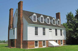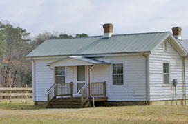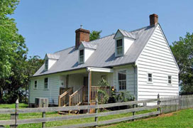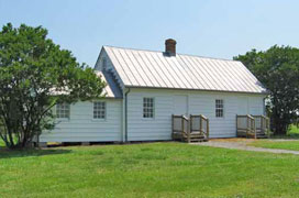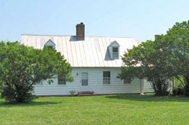 The oldest house at Chippokes and probably the earliest standing structure in the park. Built ca.1830 and expanded to its present form ca. 1847, it is a one-and-one-half story wood-frame structure set on a tall brick basement. The house stands in an open level yard with long vistas in three directions. The surrounding open pastureland drops off at the edge of the yard and slopes gently toward the James River.