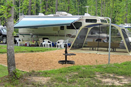 Campground A has 30 wooded sites with electric and water; they can accommodate tents, pop-ups and RVs up to 30 feet long.