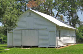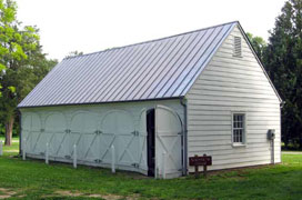 The least altered of the 20th-century buildings. It was built to house Stewart's automobiles and antique coaches. Since the state acquired the property it has housed antique coaches and carriages as part of the park's program to illustrate 18th- and 19th-century plantation life. Designed in Colonial style, its north front has five symmetrical vehicle bays with elliptical-arched openings closed by large double-leaf doors.