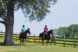 Ten miles of trails are open to horseback riders. Most trails are grass-covered and around farm fields, so they can be muddy during wet weather.