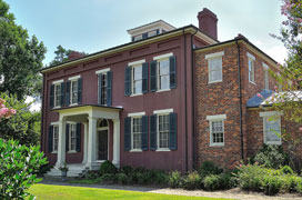 Of the five outbuildings standing in the side and back yards of the Jones-Stewart Mansion, the only original one (and the only one dating to the 19th century) is the detached kitchen. This two-story brick structure, no doubt built at the same time as the mansion, stands 25 yards southwest of the house (to the right as one faces it), on line with the mansion's rear facade.